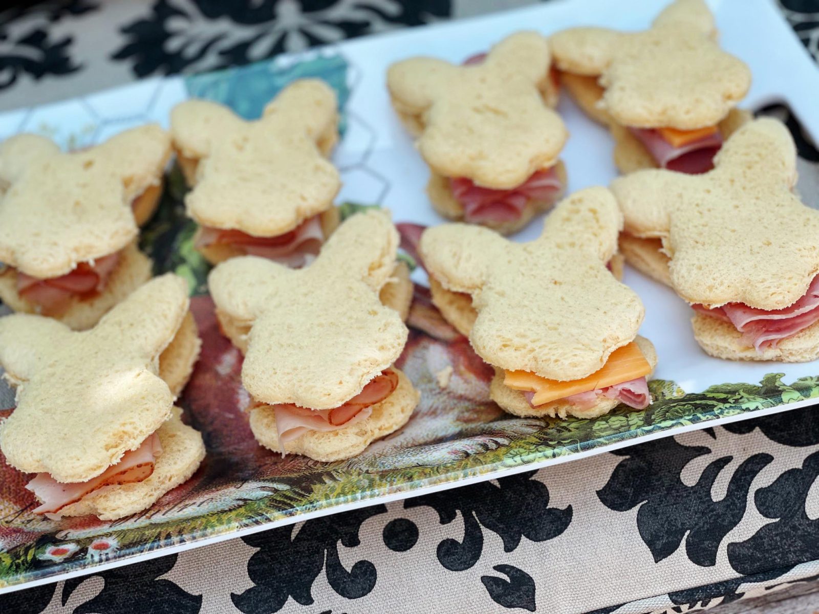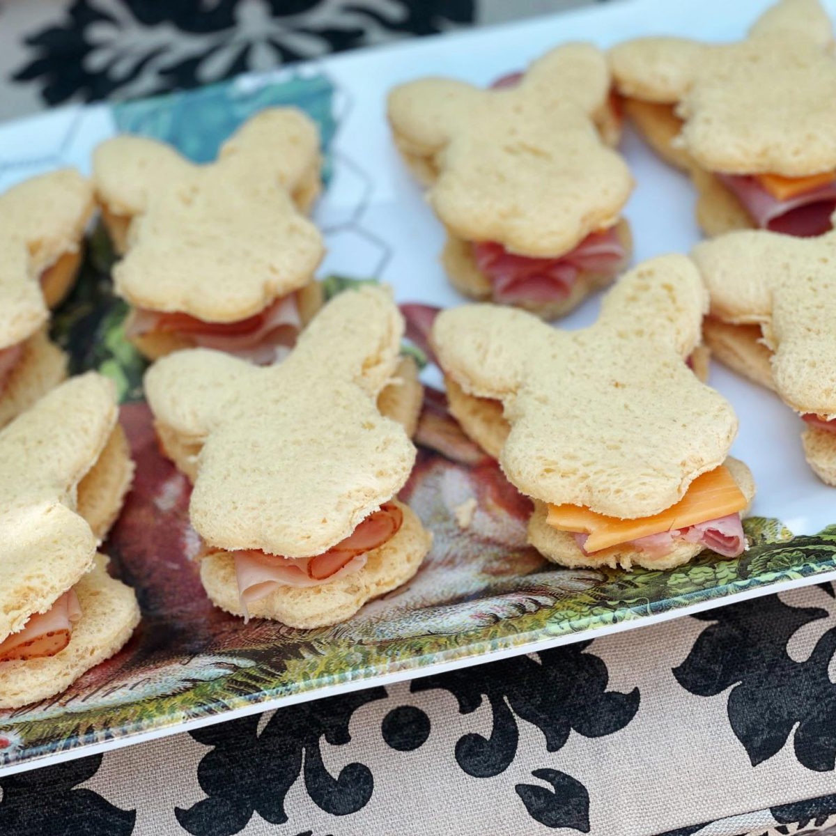 - Snacks and bunny-shaped tea sandwiches