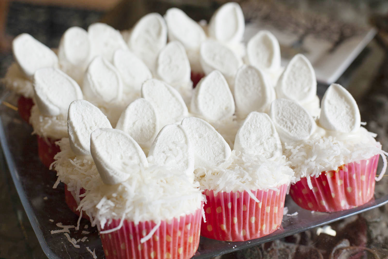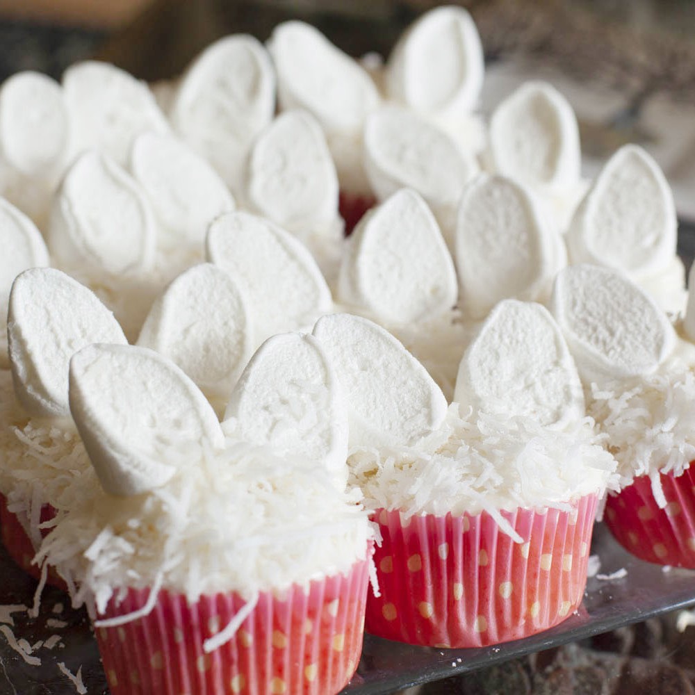 - Bunny cupcake flavors: vanilla or chocolate with vanilla frosting (for guests of course!).
